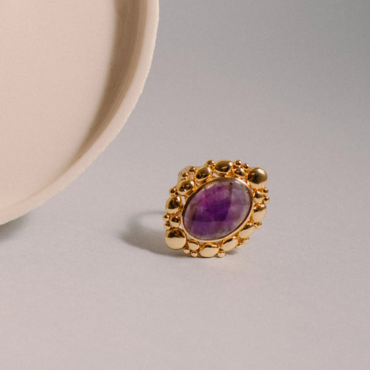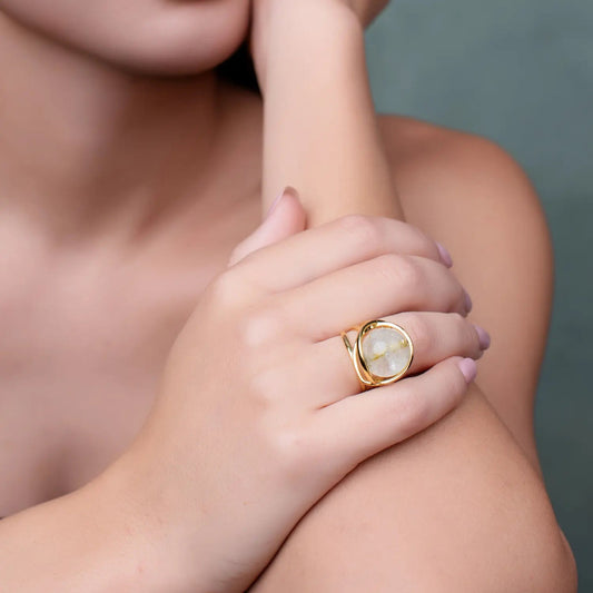 Adjustable Ring with Real Stone: Moonstone or Garnet- Maximalist Jewelry