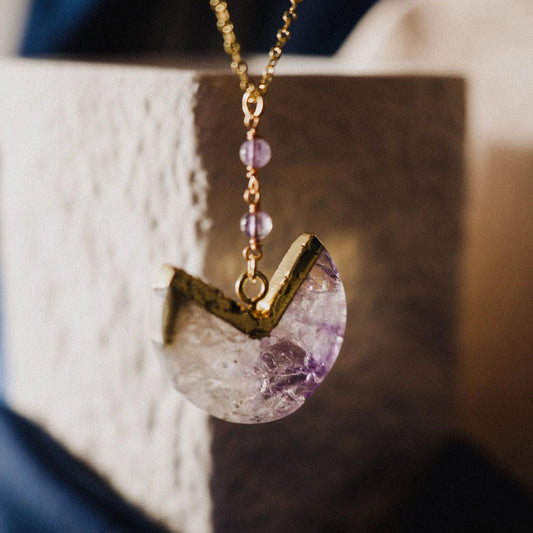 Amethyst Necklace, Gold Plated Necklace, Moon Necklace, Unique Gift