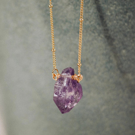Amethyst Necklace, Genuine Crystal, Natural Raw Amethyst Pendant Necklace, Women's Gift