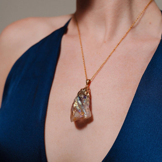 Angel Aura Quartz, Raw Crystal Pendant, Spiritual Gift